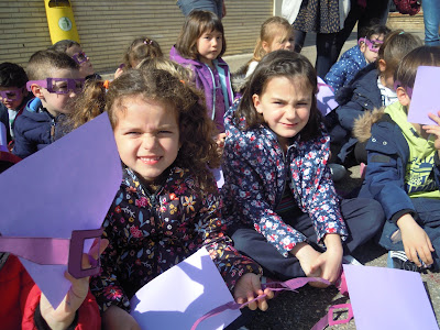 Como ya sabéis, esta semana hemos celebrado el día de la igualdad. Hemos salido al patio con nuestras gafas moradas, a formar entre todos el símbolo del hombre y el de la mujer con un igual en el centro, se ha leído el manifiesto y hemos bailado y jugado al juego de los piropos, recordando que TODOS Y TODAS SOMOS IGUALES.